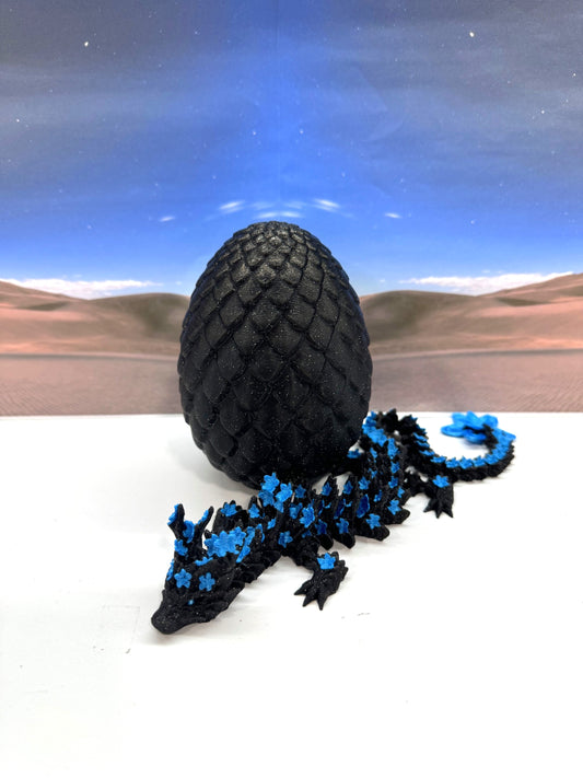 3D Printed Dragon with Dragon Egg, 12 Inches Articulated Dragon, Black and Blue Cherry Blossom Dragon, Fidget ADHD Autism Toy, Relief Anxiety Dragon Toy D053