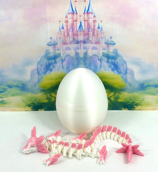 3D Printed Dragon with Dragon Egg, 12" Articulated Unicorn Dragon, White and Pink Unicorn Dragon, Fidget ADHD Autism Toy D052-WE
