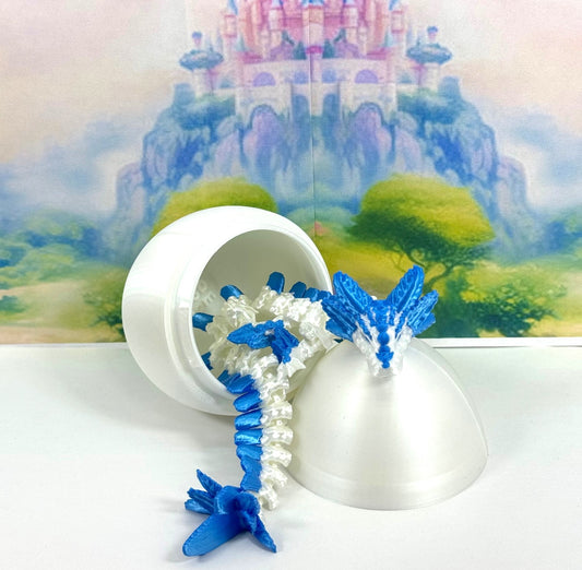 3D Printed Dragon with Dragon Egg, 8.25" Articulated Axolotl Dragon, White and Blue Axolotl Dragon, Fidget ADHD Autism Toy D041WP-WE (Copy)