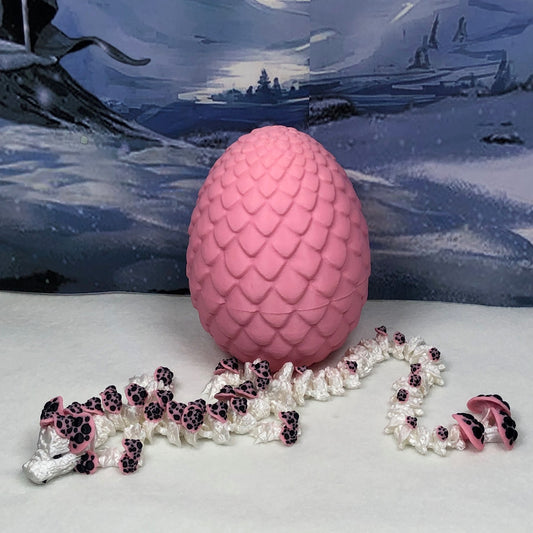 Generic Articulated Dragon with Dragon Egg 3D Printed, 12" White and Pink Mushroom Dragon, Fidget Anxiety Toy, Executive Desk Toy D035-PE
