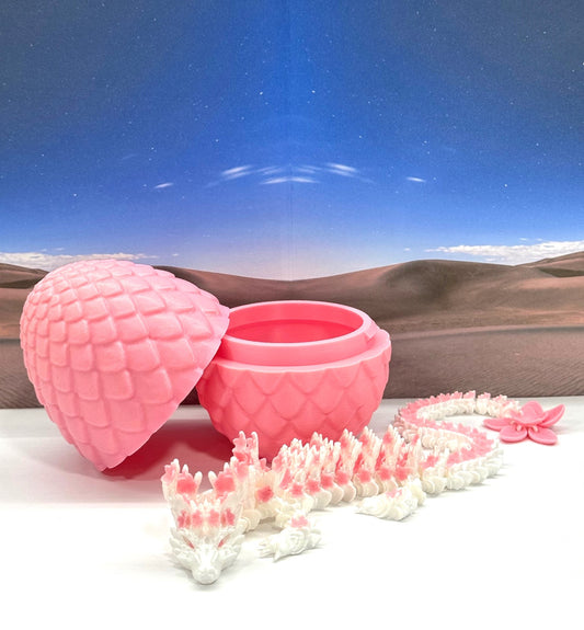 Generic 3D Printed Dragon with Dragon Egg, 12" White AND Sakura Pink Cherry Blossom with Dragon Egg, Fidget ADHD Autism Sensory Toy D016
