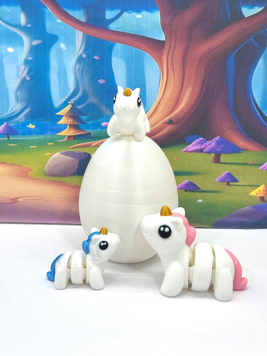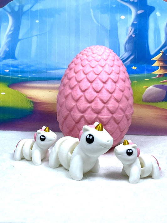 3pcs 3D Printed Unicorn with Egg, Articulated Pink and White Unicorn, Fidget Mini Animal Gift Idea, Party Decorations MU001-3X