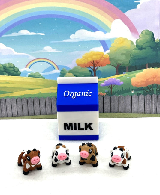 4pcs 3D Printed Articulated Mini Cows with Milk Cartons, Fidget Mini Cows Toy, Executive Desk Toy, Party Decorations MC001