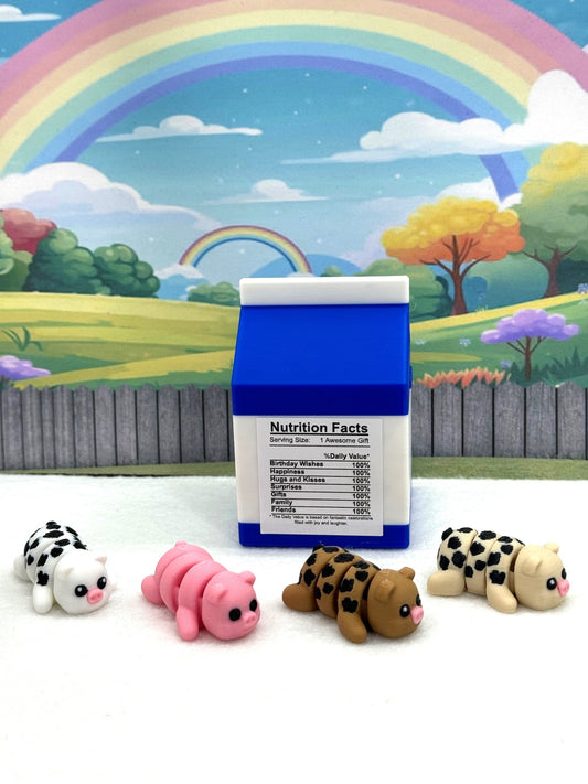 4pcs 3D Printed Articulated Mini Pigs with Milk Cartons, Fidget Mini Pigs Toy, Executive Desk Toy, Party Decorations MP001