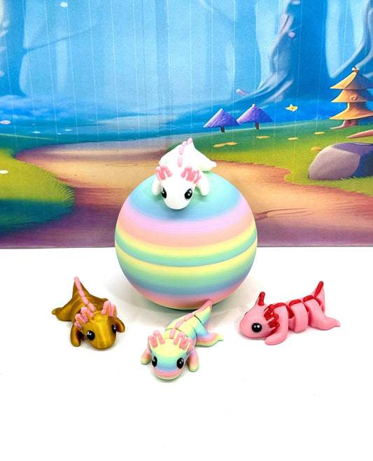 2pcs 3D Printed Articulated Mini Axolotl with Egg, Fidget Mini Axolotl Fidget Toy, Executive Desk Toy, Home Decor MA001