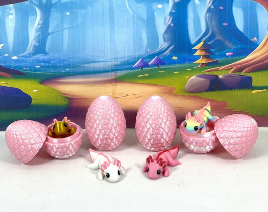 4pcs 3D Printed Articulated Mini Axolotl with Eggs, Fidget Mini Axolotl Toy, Executive Desk Toy, Party Decorations MA001-4X