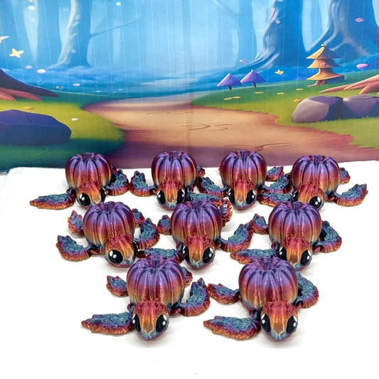 3D Printed Articulating Pumpkin Turtle, 10pcs Multi Color Fall Desk Decor Fidget Toy TP001-ASS